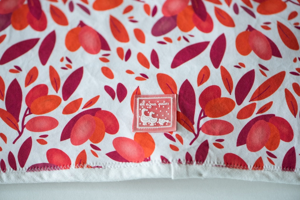 Toalla confeccionada en rizo de algodón 100%. El enorme bordado está confeccionado artesanalmente, y es del mismo tejido que el resto de la toalla, para que incluso esta parte, sea muy suave y seque perfectamente. Las medidas son 130x75 cm.