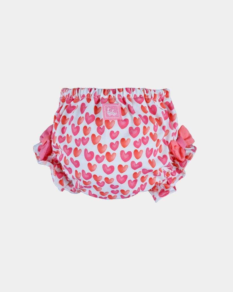 Braguita de baño confeccionada en tejido de poliamida con un 18% de lycra. Las gomas de los camales son extremadamente elásticas y suaves. Es adecuado para colocar sobre el pañal, pero también queda muy mona sin él. Recomendamos quitar el pañal para bañar al bebe y volver a colocárselo después. Esta prenda es adecuada para la playa, pero puede servir perfectamente para vestir en otras ocasiones.