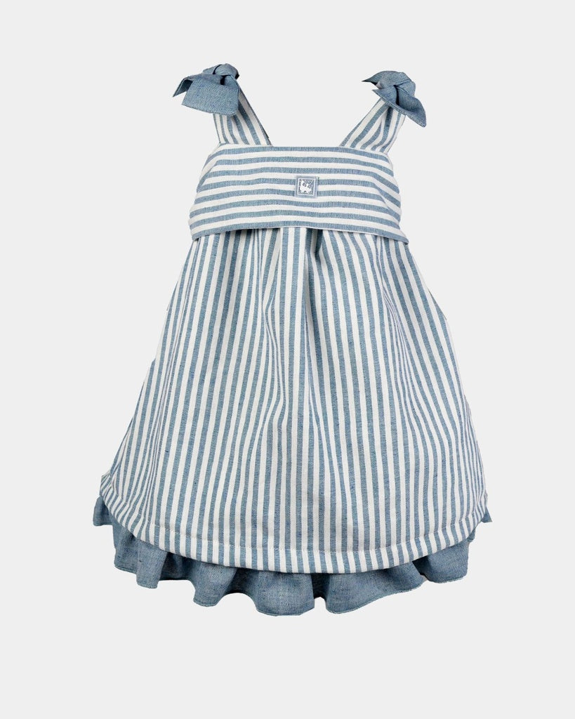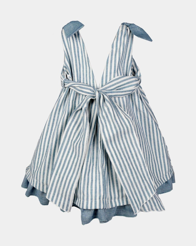 Vestido de niña perfecto para las ocasiones especiales. La falda tiene mucho vuelo y en los laterales y en la espalda el tejido engomado hace que se ajuste a la perfección al cuerpo de las niñas. Los tirantes tienen el tejido ligeramente fruncido y se juntan en la espalda haciendo una forma de V.