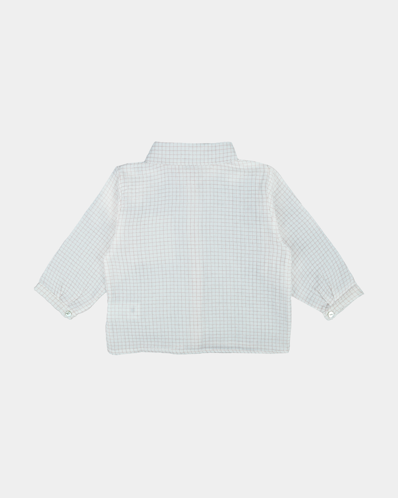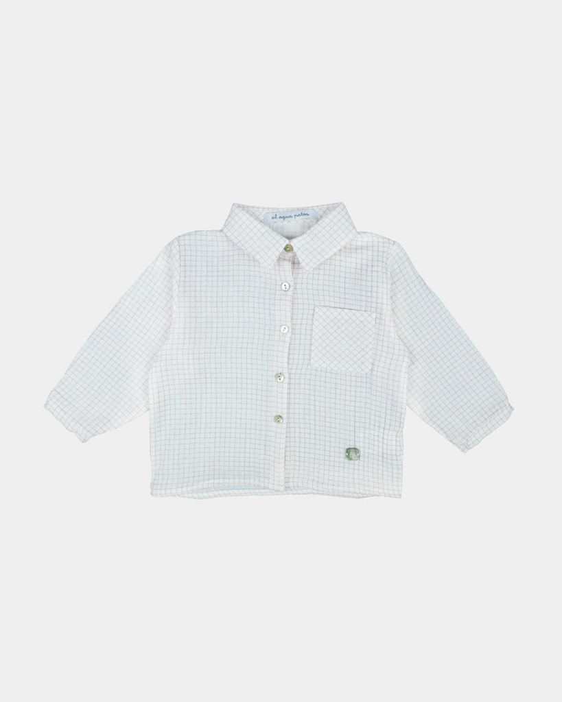 Camisa de manga larga para niño de 3 meses a 10 años, de cuadros. Cuello camisero con pie. Abertura en el centro delantero con botones para abrochar. Tejido 100% de algodón